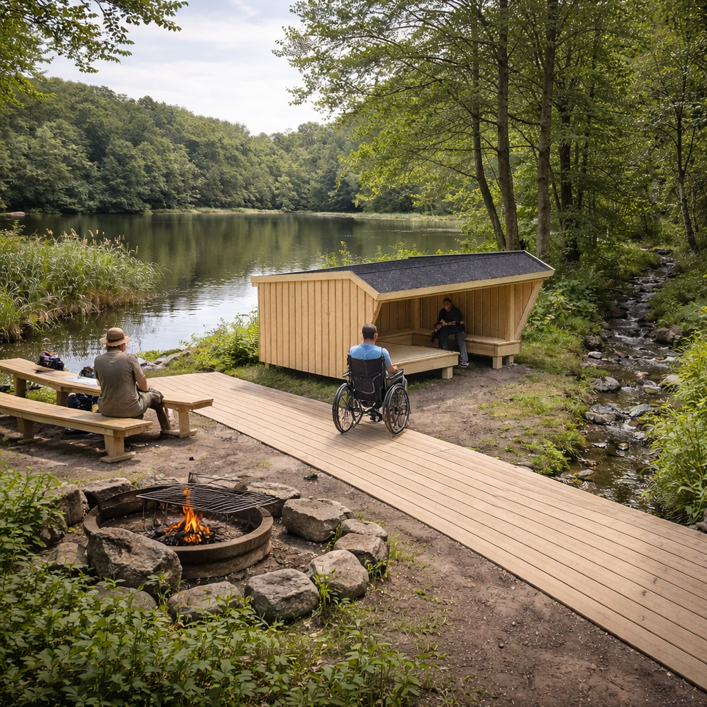 Vi tilbyder alt fra shelters og bænke til bålhytter og mere.